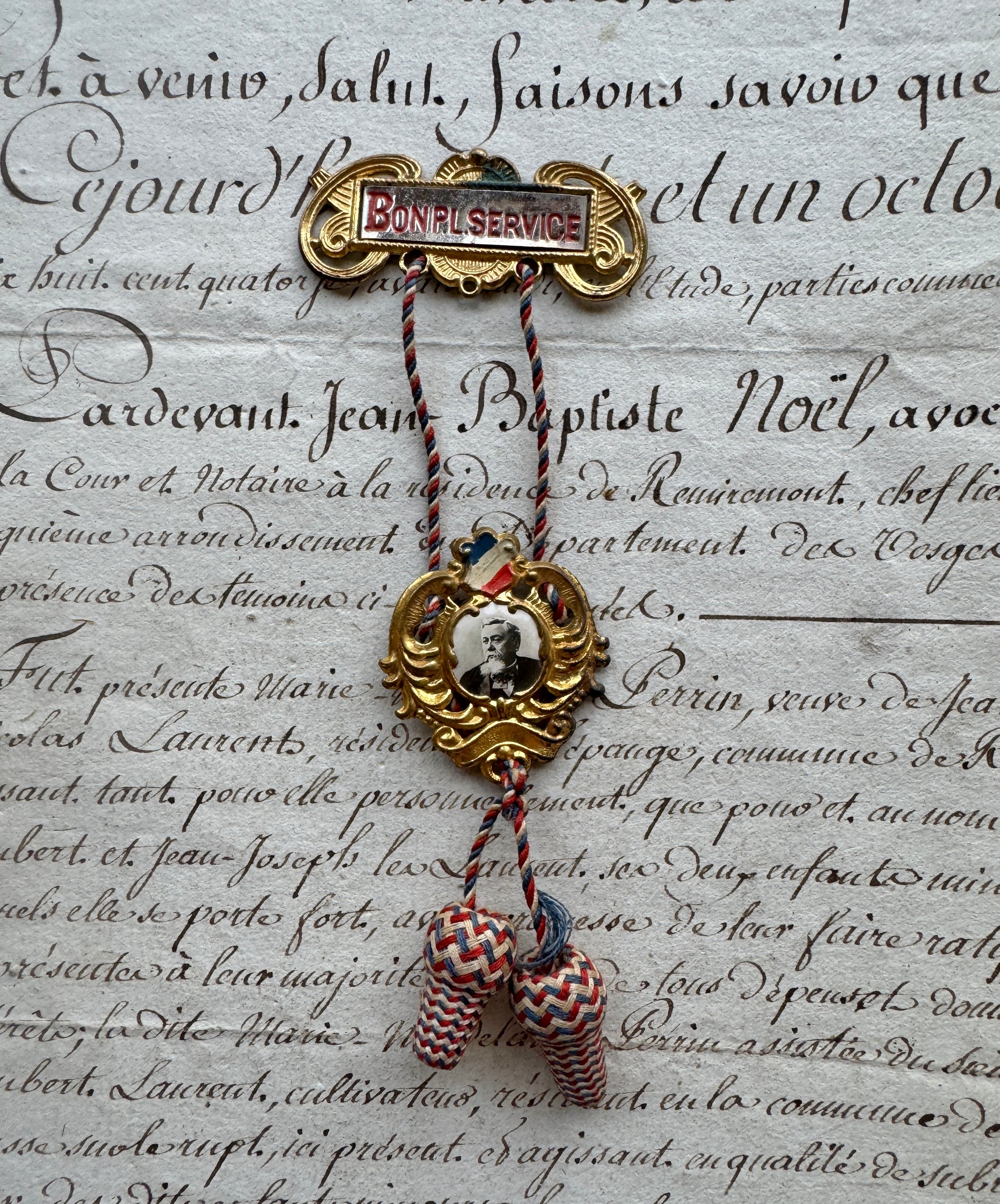 Antique French “Bon Service” Medal with Portrait & Tassels