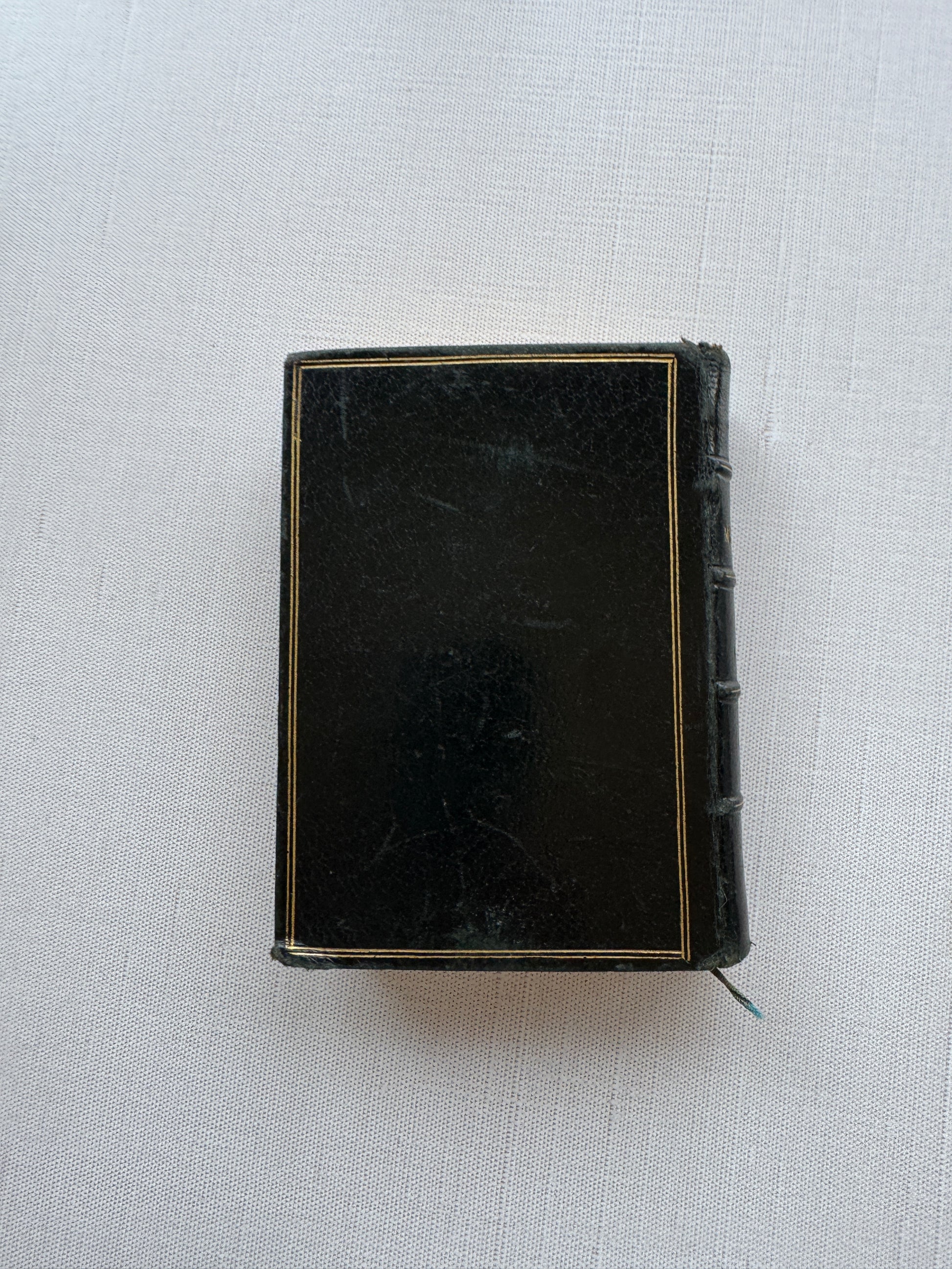This exquisite 19th-century French Catholic prayer book is a true treasure, bound in black leather with intricate gold tooling on the covers and spine. The elegant gilded edges add to its luxurious design. This antique missal contains beautiful imagery throughout. printed in French and Latin, with prayers, litanies, and devotions. Perfect for collectors of antique religious artifacts, French ephemera, or historical devotional items. Measures 4.5" X 3.5". Mild foxing, but in overall good condition.