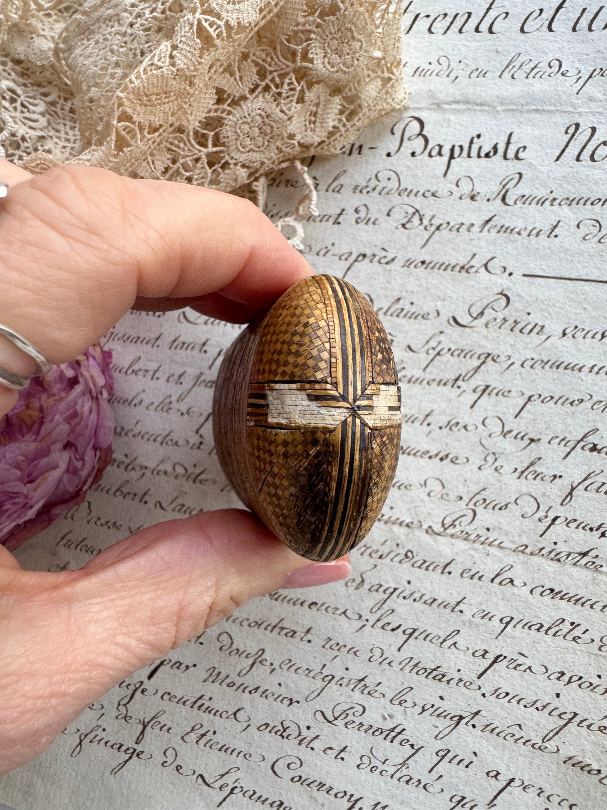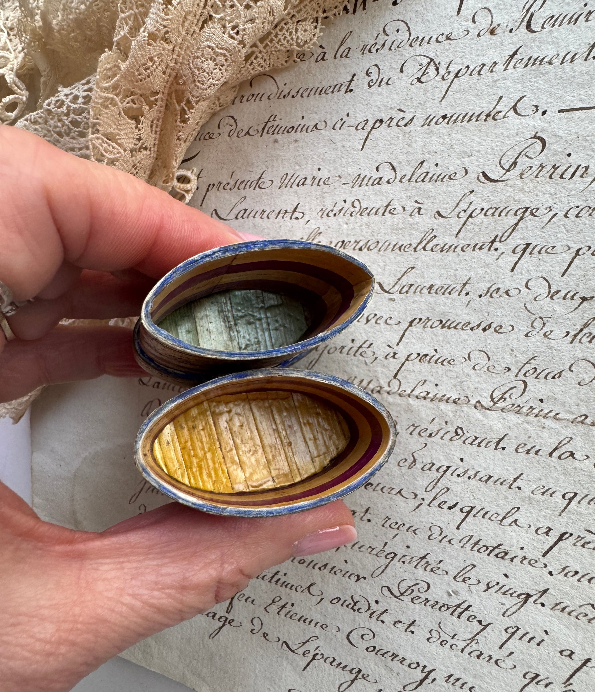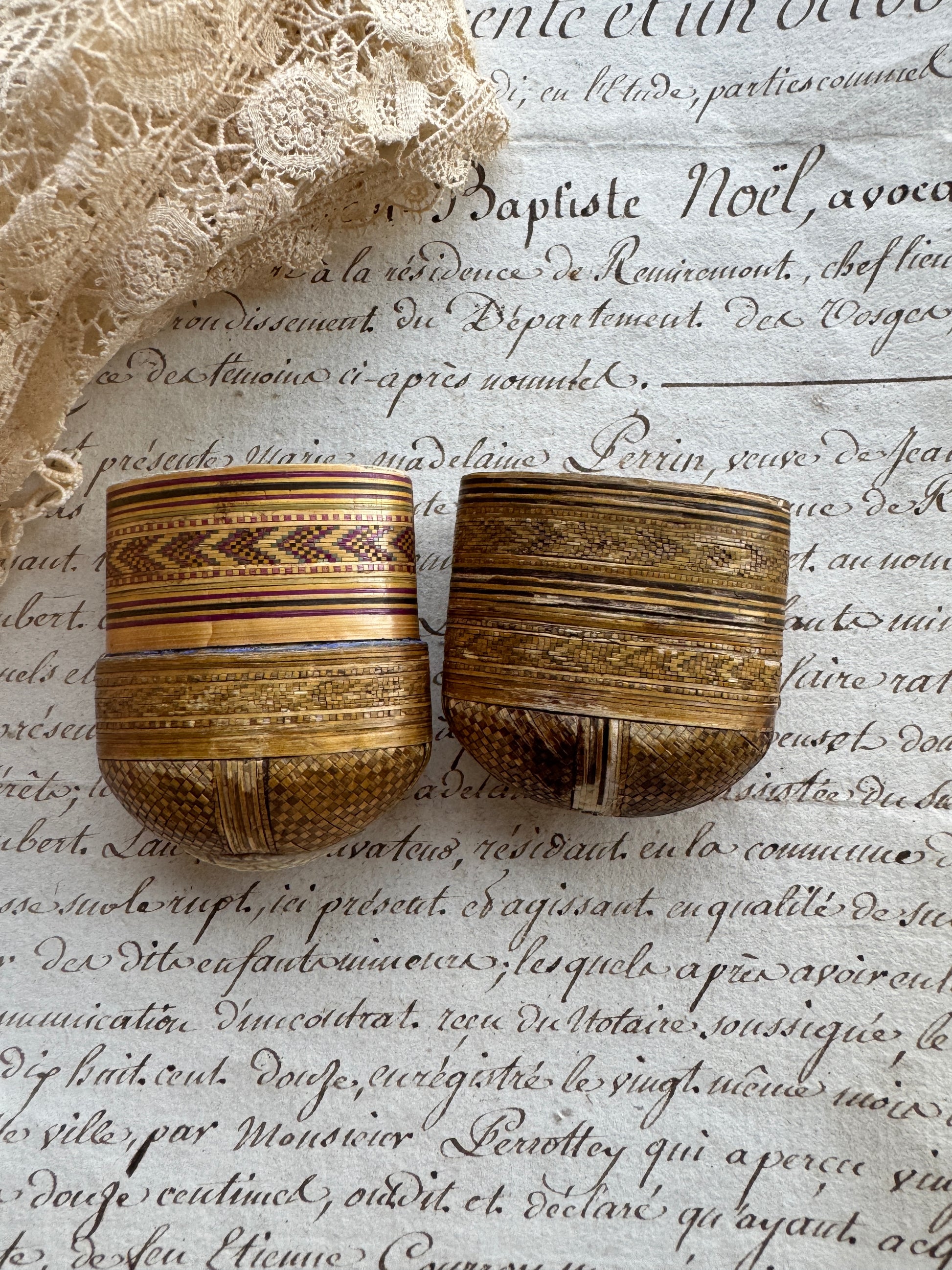 Antique Straw Work Match Vesta Case with Bone Striker- Early 19th Century France