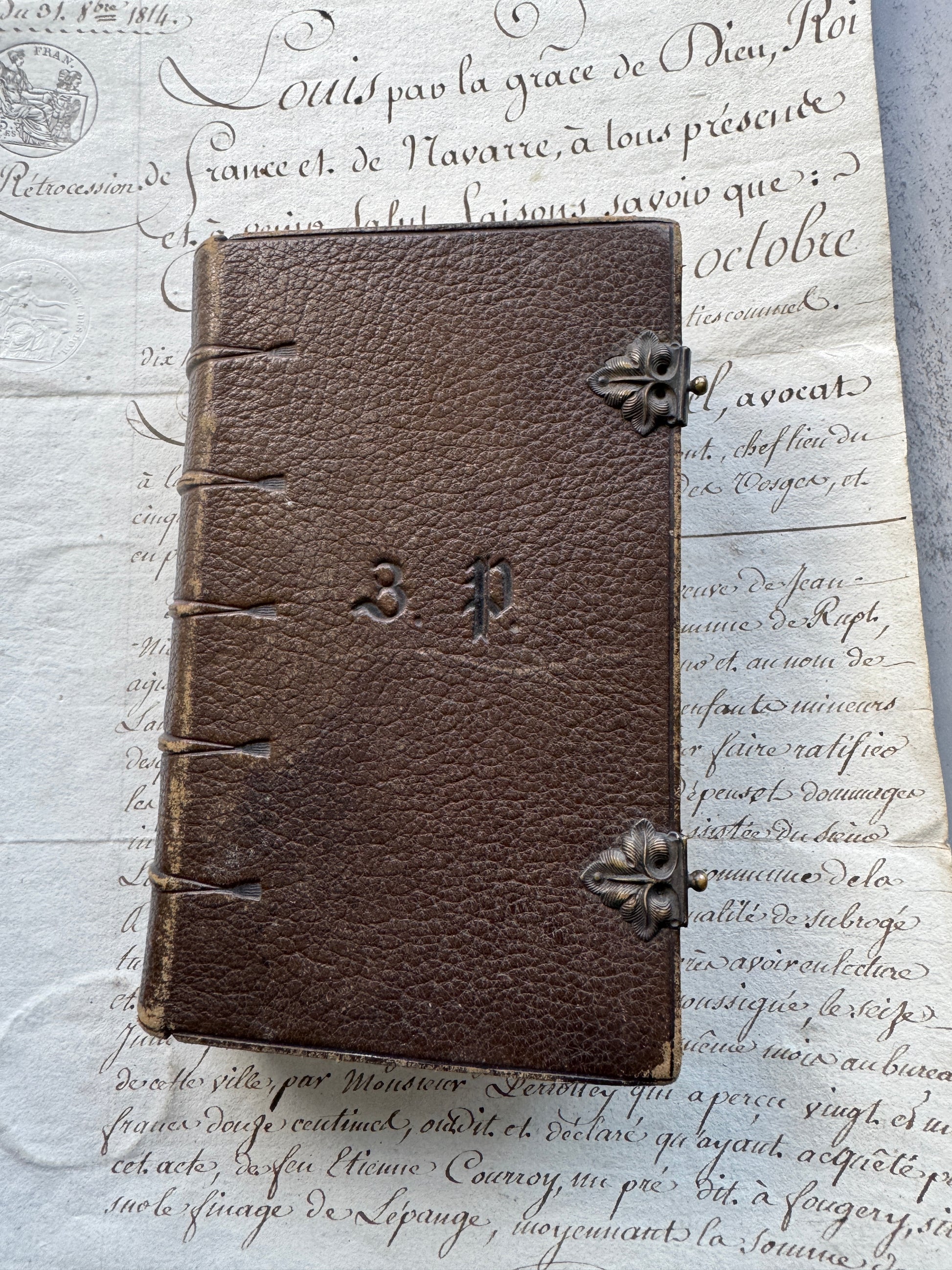 French Paroissien Romain Prayer Book dated 1857 Leather with Metal Clasps & Gilt Edges