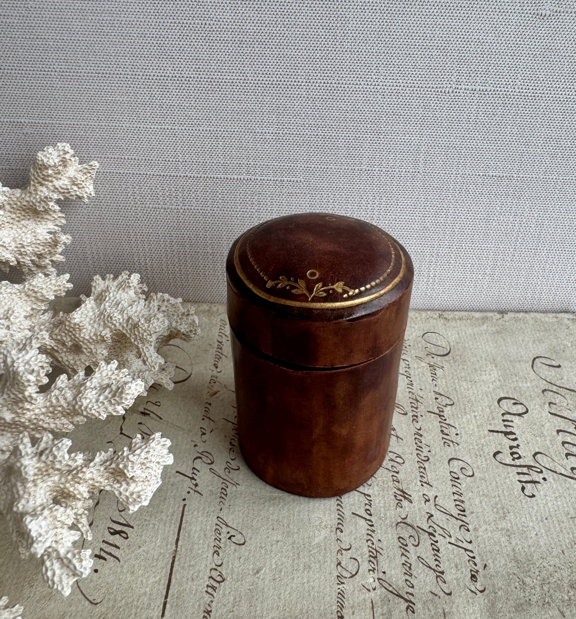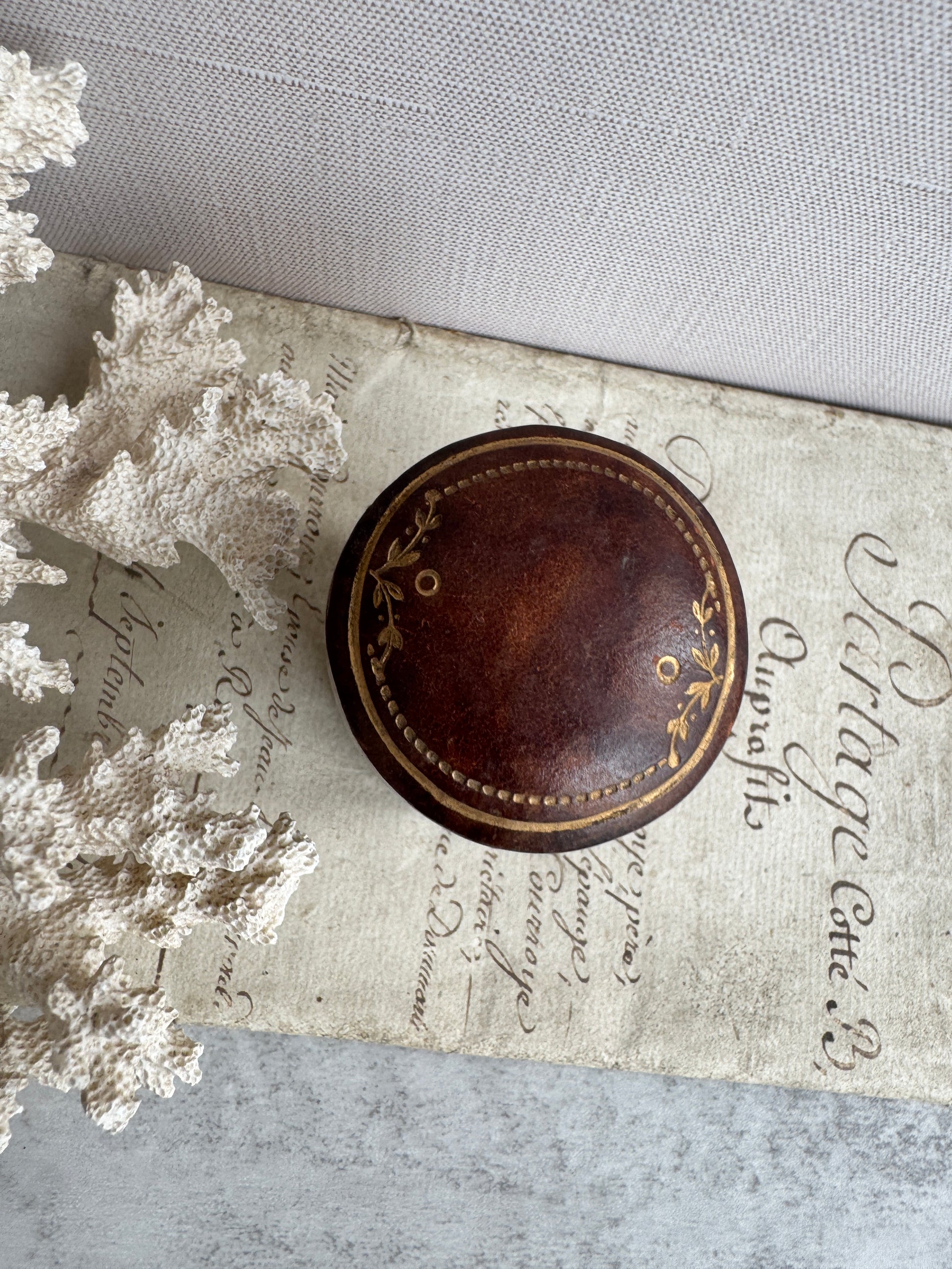 French Antique Leather Covered Wooden Snuff or Pill Box