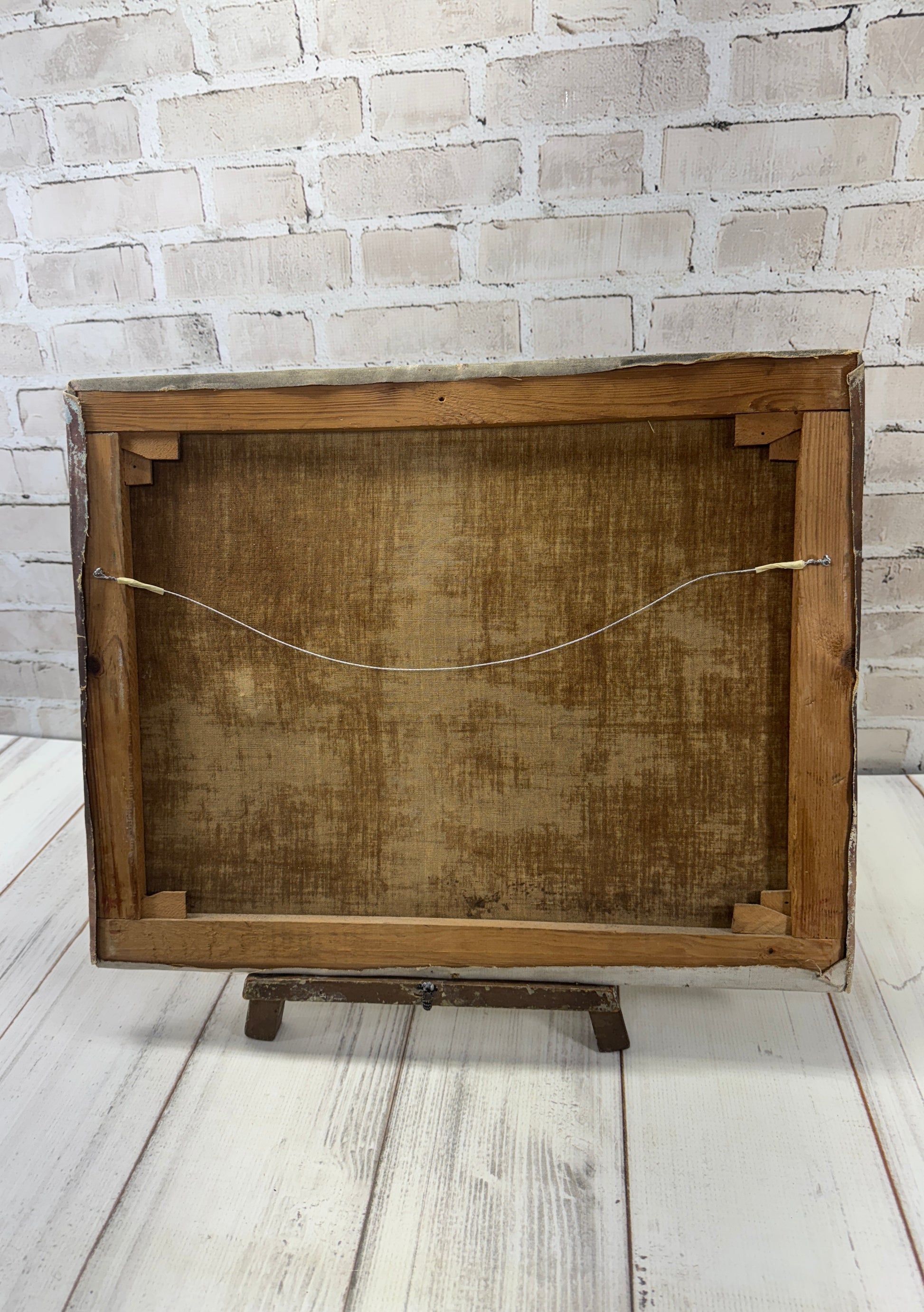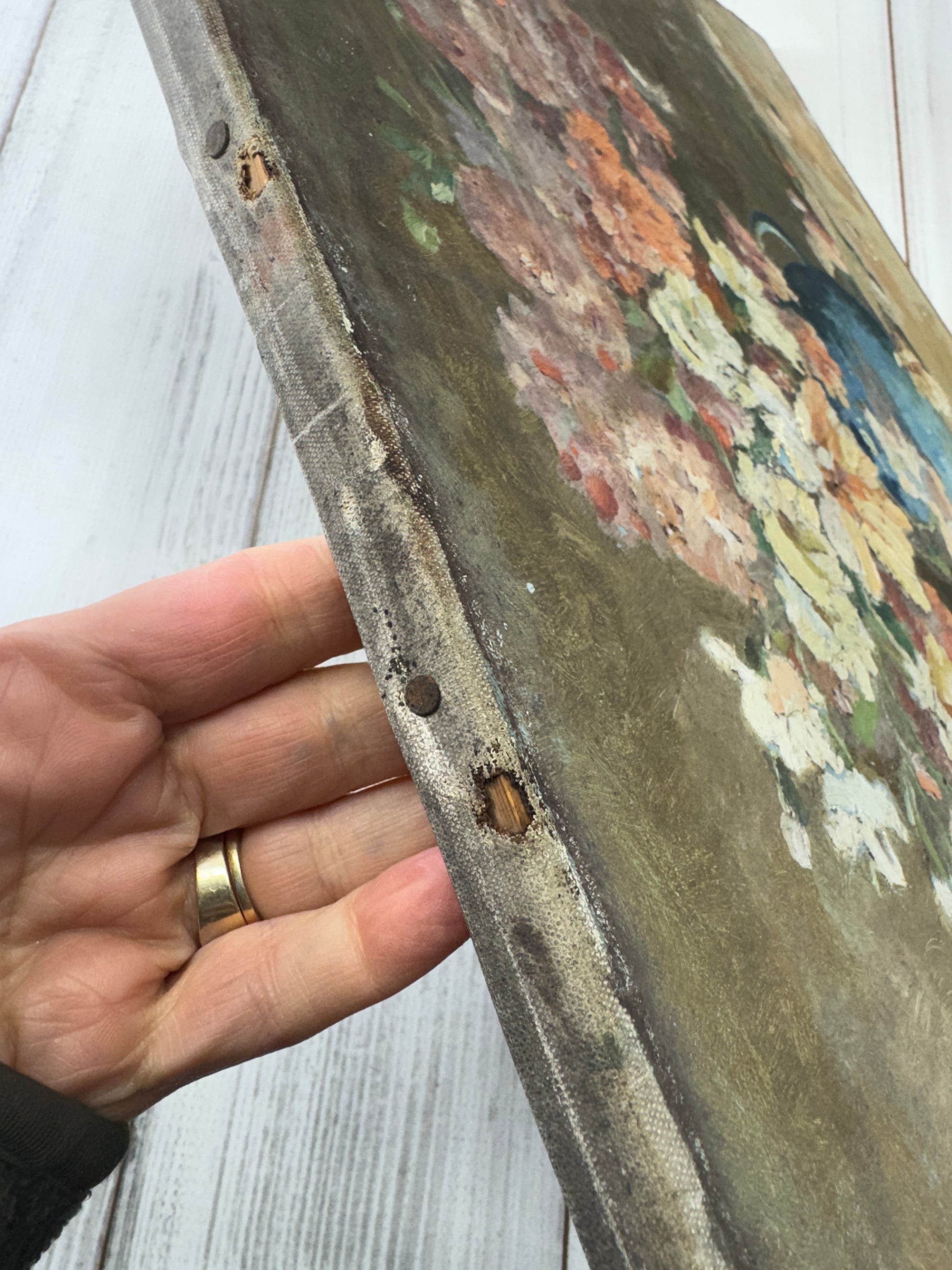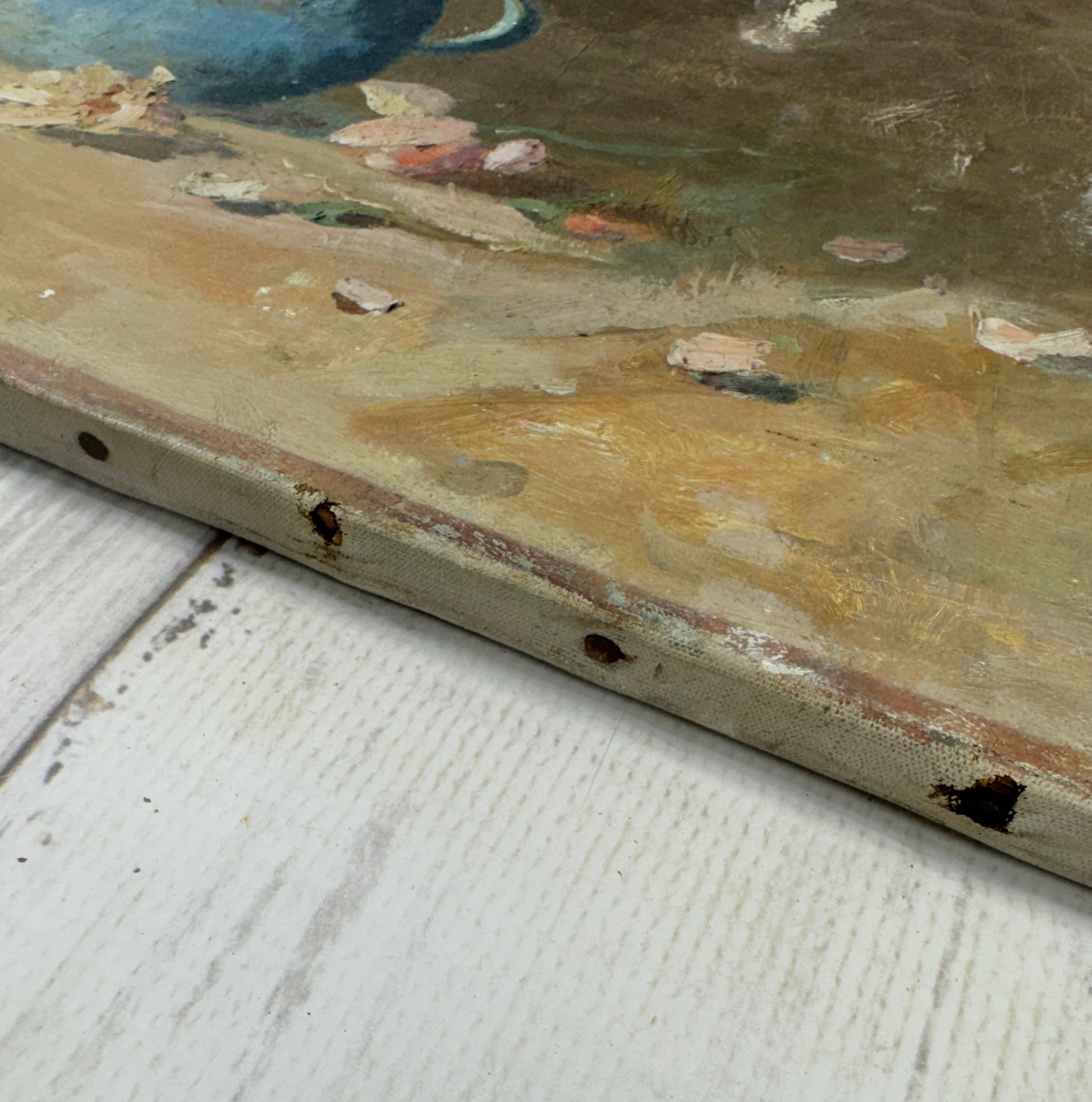 Antique French Floral Painting, Still Life in Blue Pitcher