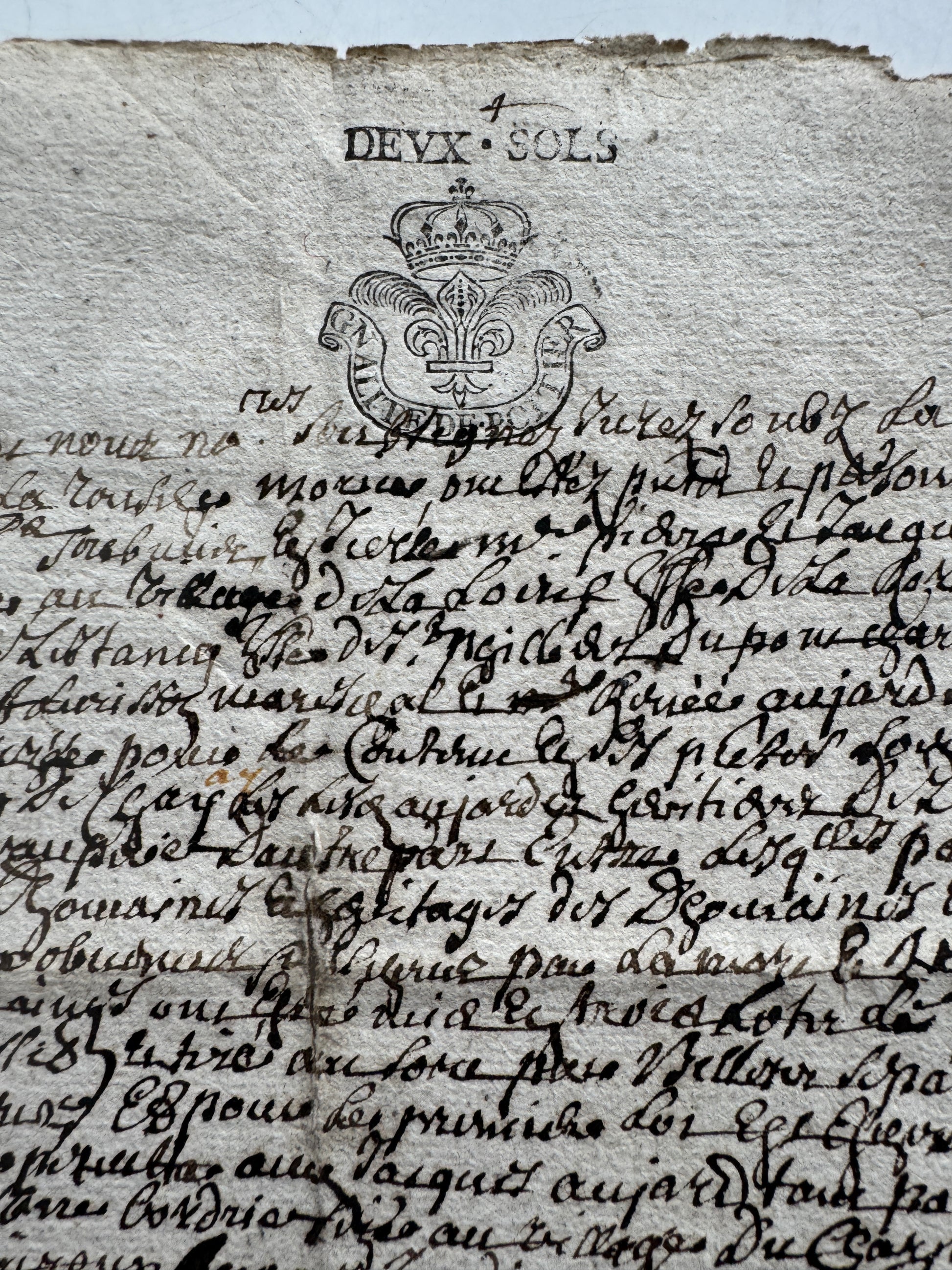 Antique French 18th Century Legal Document, Handwritten with Royal Stamp