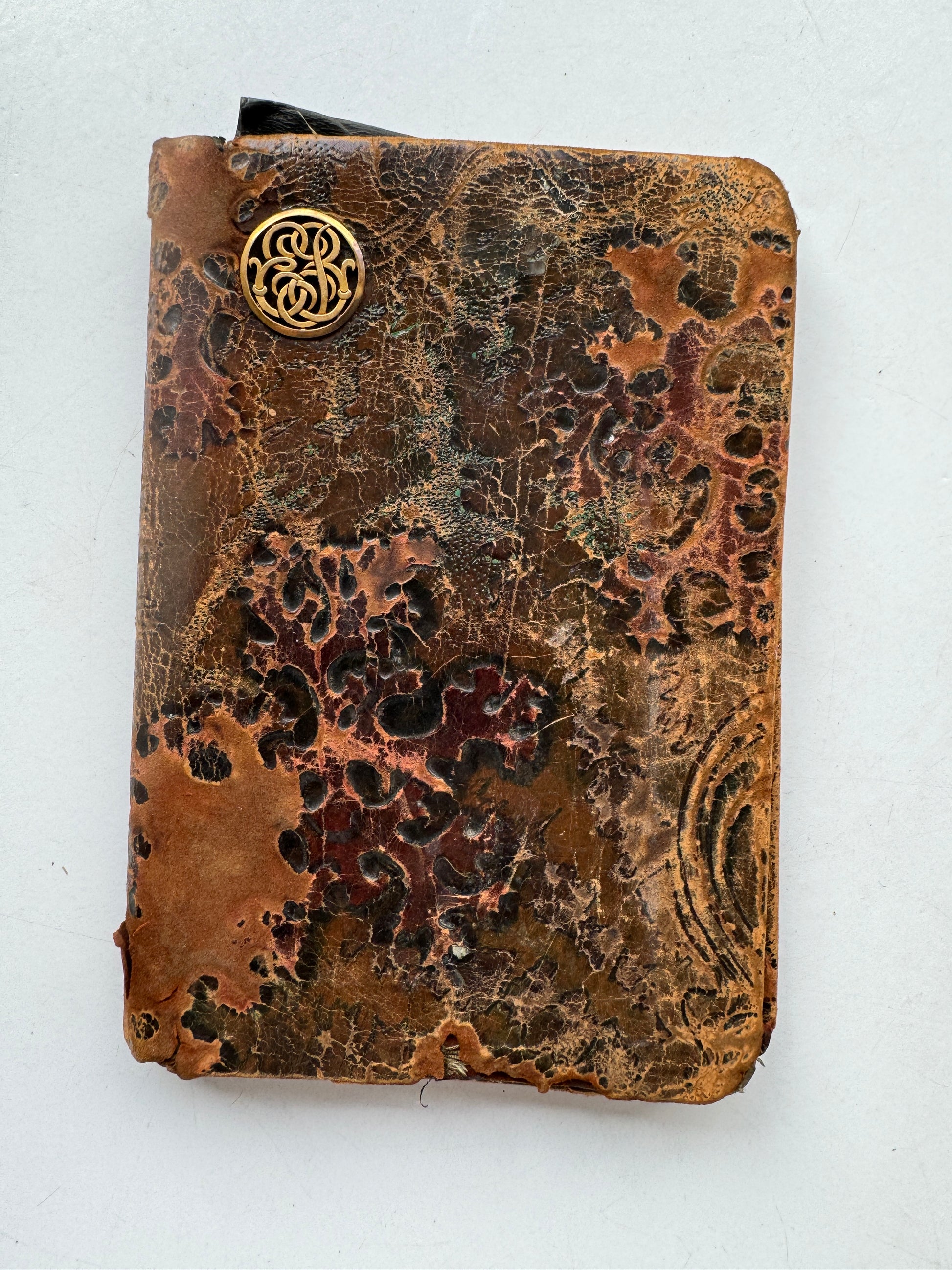 Antique Leather Portfolio Wallet, Letter Holder, Embossed with Monogram